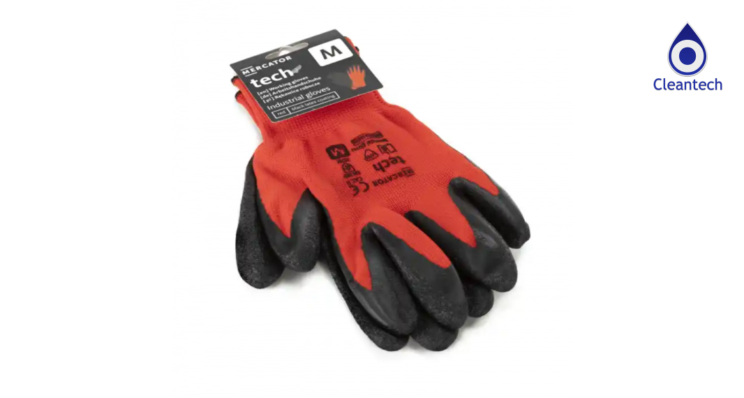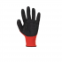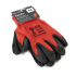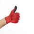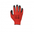 უნივერსალური წითელი პოლიესტერის ხელთათმანები შავი ლატექსის საფარით. ერთ პოლიჩანთაში მოთავსებულია 12 წყვილი ხელთათმანი, თითოეული წყვილი შეკრულია ქაღალდის ეტიკეტით. ხელთათმანის ნაკერების გარეშე ნაქსოვი ნაწილი ერგება მომხმარებლის ხელს და უზრუნველყოფს ჰაერის თავისუფალ ნაკადს, რაც აუმჯობესებს მუშაობის კომფორტს და ამცირებს ხელის ოფლიანობას. ლატექსის საფარზე გამოყენებული ნაოჭებიანი ტექსტურა აუმჯობესებს მოჭიდებას, რაც ხელთათმანებს იდეალურს ხდის ხელსაწყოებთან მუშაობისთვის.
