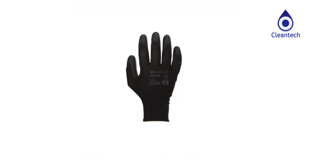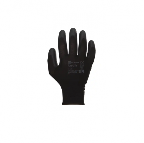 Tech black + black PU -black polyester work gloves with black polyurethane coating M Tech black + black PU -black polyester work gloves with black polyurethane coating M