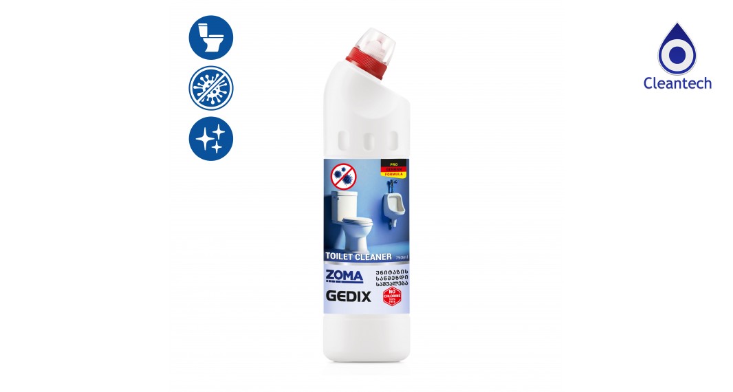 Zoma Gedix -გედიქსი არის მჟავა შემცველი ხსნარი უნიტაზის/პისუარის ყოველდღიური მოვლის საწმენდი სადეზინფექციო საშუალება.